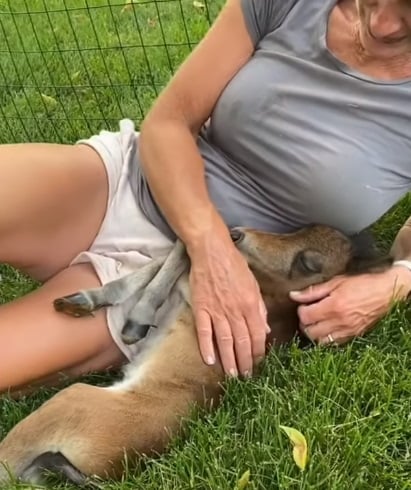 In the video, we see Stacy cradling Teddy as if he were her own little child. And Teddy doesn’t mind one bit!