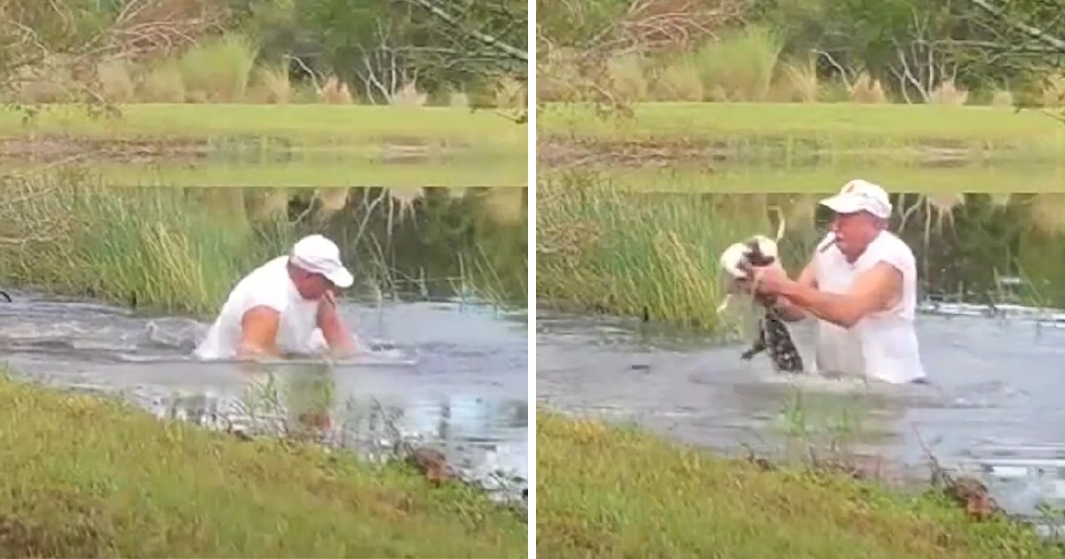 Alligator Grabs Puppy But Quickly Realizes He Picked The Wrong Dad To Mess With