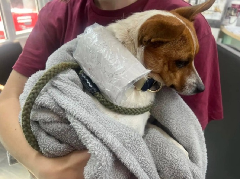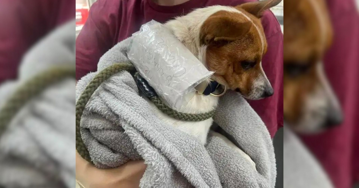 Initially, they assumed he was just a stray, but as they got closer, they spotted a collar with a note carefully sealed in a plastic bag attached to it. The discovery left them stunned.
