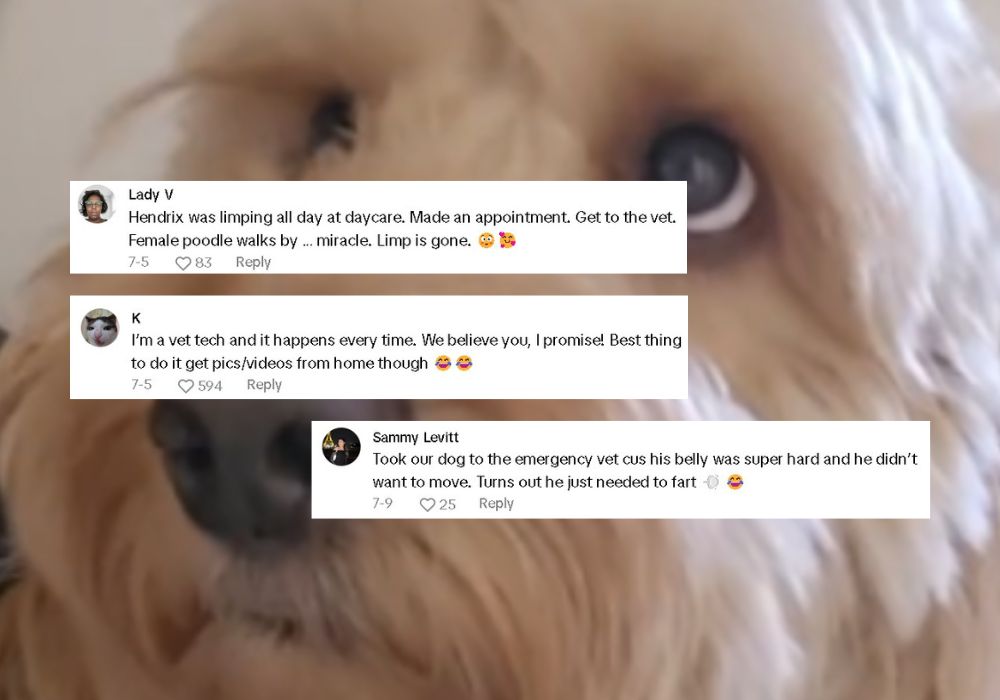 Another added, "Hendrix was limping all day at daycare. Made an appointment. Get to the vet. Female poodle walks by … miracle. Limp is gone. 😳🥰"