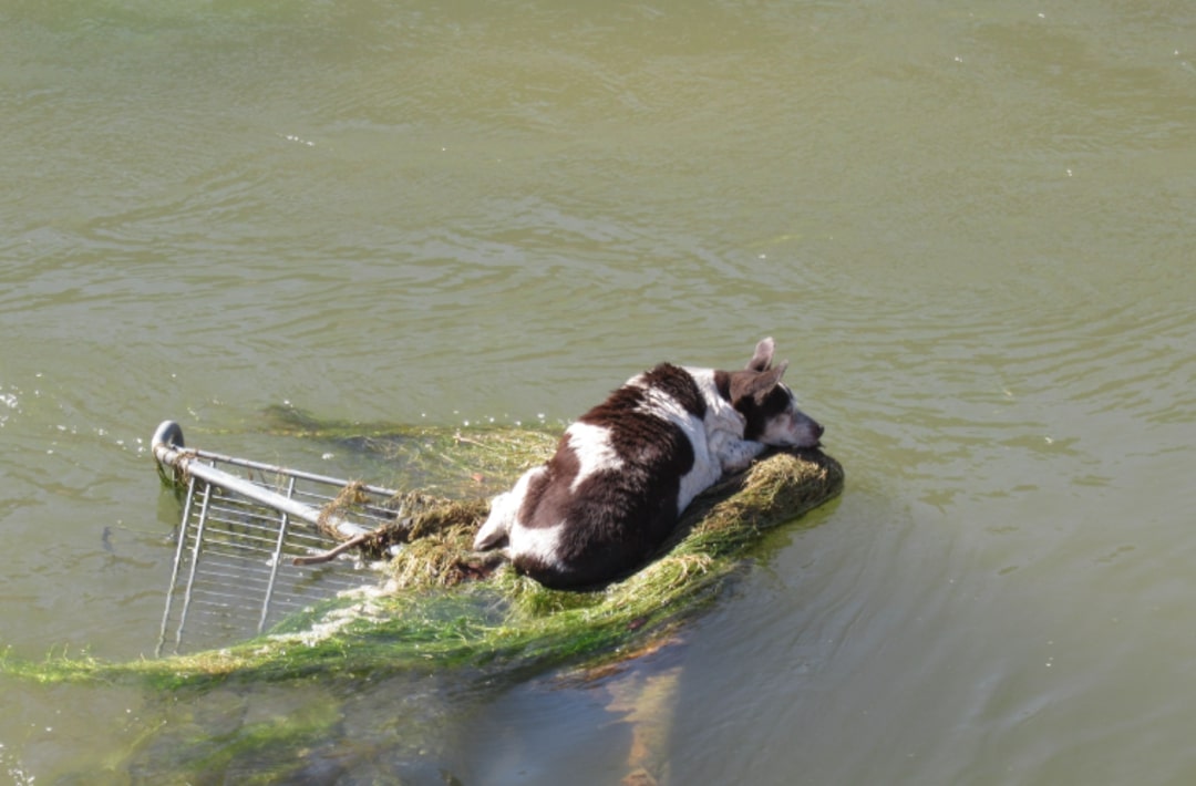 Passerby Spotted A Dog Clinging To A Shopping Cart In A Canal — What Happened Next Was Incredible