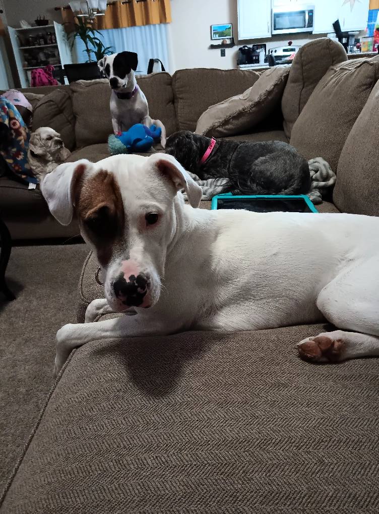 "She's good with kids and other dogs. She sleeps in her crate all night without a peep, no accidents in the crate... she whines and paces the house when she needs to go outside, not food aggressive with either humans or dogs," Stephanie proudly shared in a Facebook post.