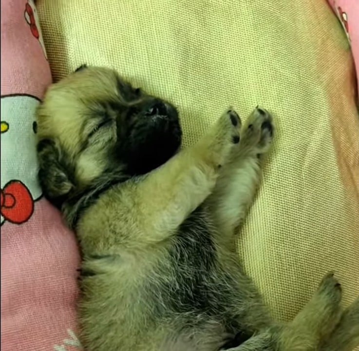 Instead of curling up in the warmth of his mother's embrace, this tiny pup found himself surrounded by garbage.
