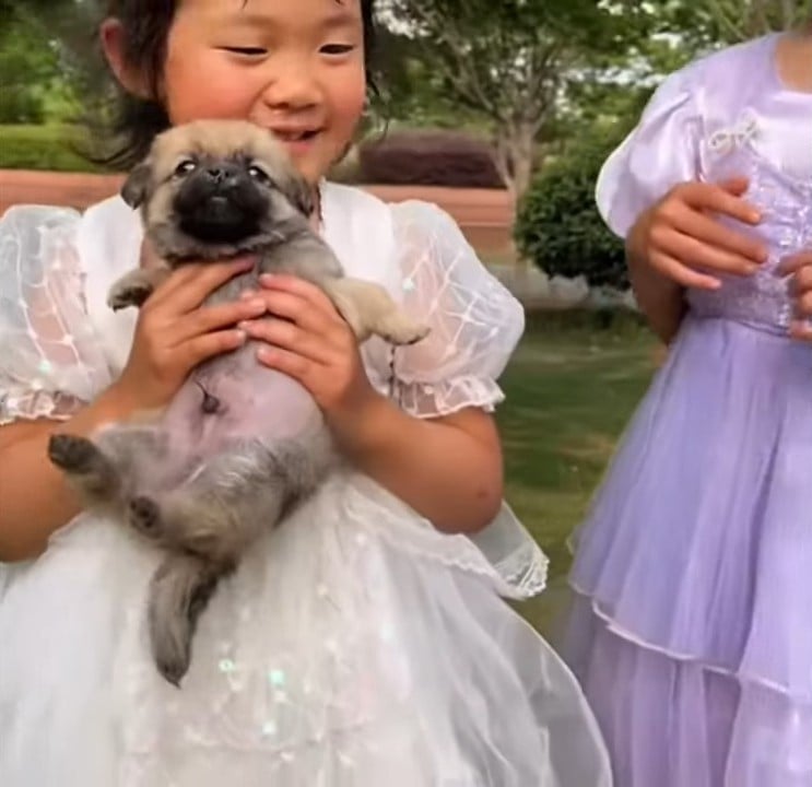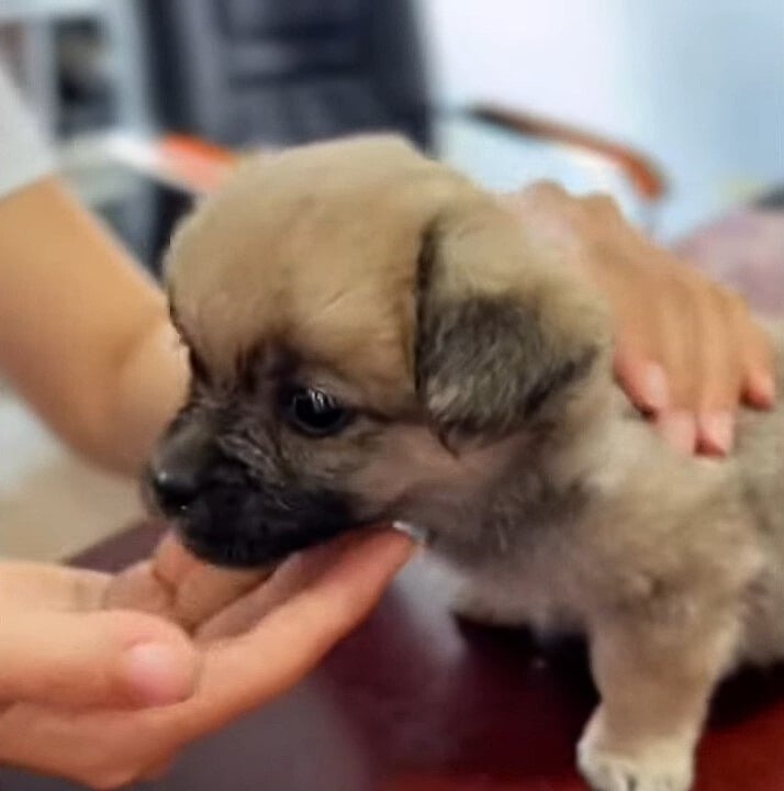 When kind-hearted people came to throw out their trash, they noticed the small puppy.