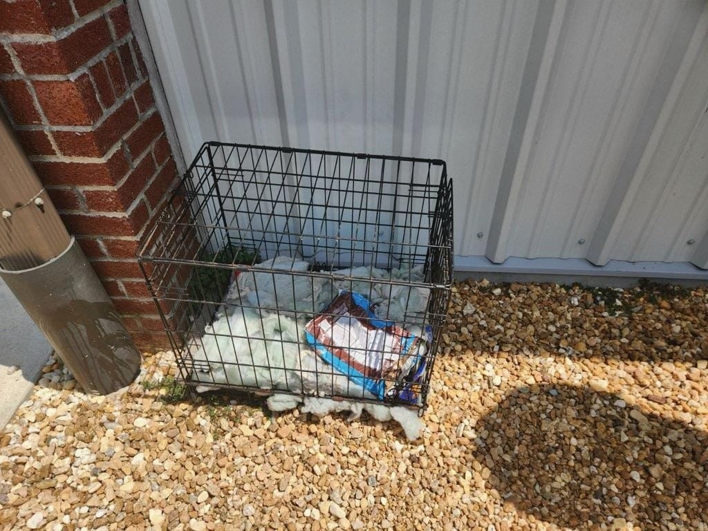 A kind man stumbled upon the abandoned puppy in a cage near the Books-A-Million parking lot in New Bern, North Carolina, and immediately contacted New Bern Animal Control.