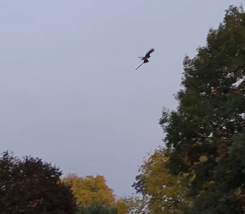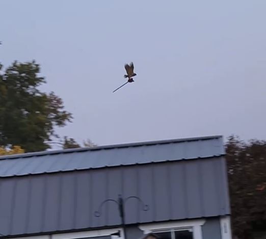 To everyone’s amazement, the owl had picked up a stick horse toy and was gliding through the air with it, looking strikingly like a witch cruising across the autumn sky.
