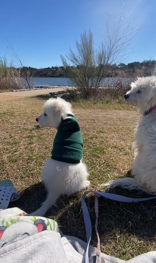 Rachel reflected on the timing: "My soul puppy had just passed away right before that at 19 years old. So, I had zero dogs at the time. I went from zero dogs to very quickly having Ellie and all of her babies."
