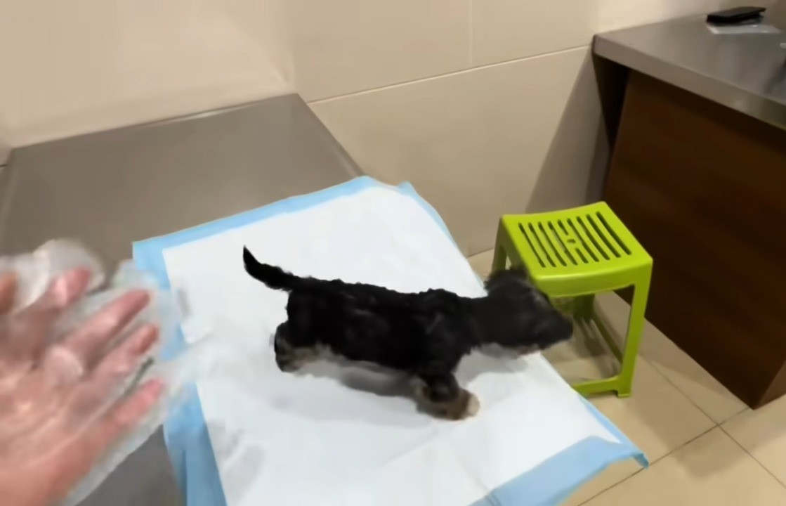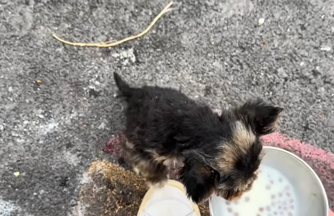 Clearly starving, the puppy needed a special diet to help him recover his strength.